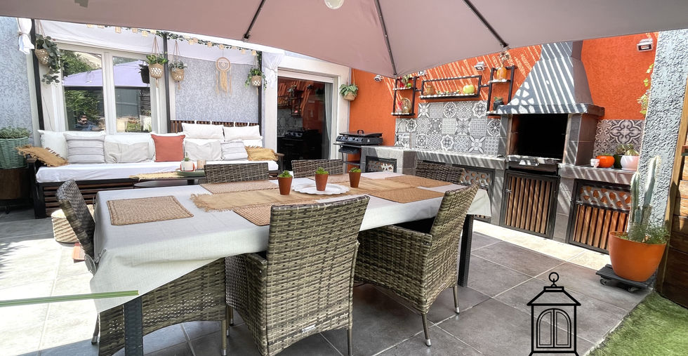 Et puis, il y a l’extérieur : Un jardin intime, à l’abri des regards, qui respire la tranquillité. Pelouse, verdure, et une belle cuisine d’été couverte sur la terrasse, pensée pour recevoir sans contrainte.